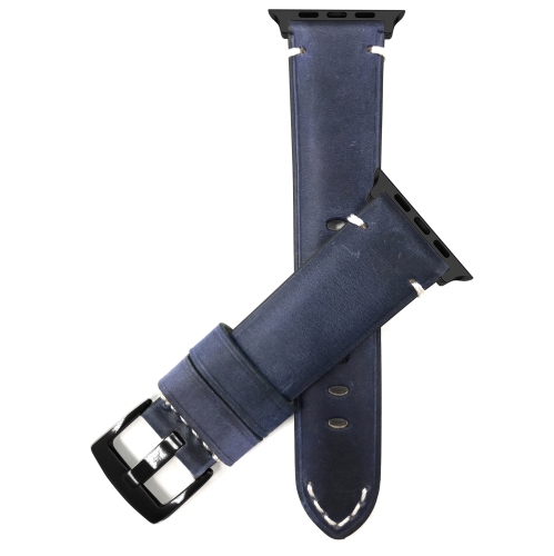 Bandini Extra Long Leather Watch Strap for Apple Watch Band 46mm / 49mm / 45mm / 44mm / 42mm (Series 3), Series 11 10 9 8 7 6 5 SE, Ultra 3 2 1 Distressed, Blue / Black Hardware