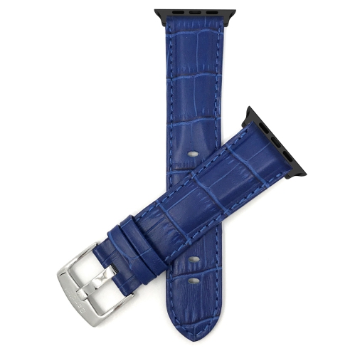 Bandini Royal Blue Leather Watch Band Replacement for Apple Watch 46mm / 49mm / 45mm / 44mm / 42mm (Series 3), Ultra 1, Ultra 2, Series 11, Series 10, Series 9, Series 8, Series 7, SE, Series 6, Series 5, Series 4, Series 3, Series 2, Series 1 for Men and Women (Unisex) - Alligator Pattern - Black Connector Adapter