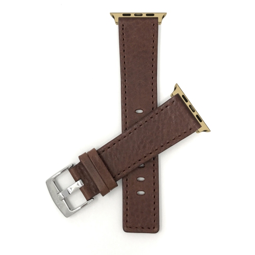 Bandini Brown Leather Watch Band Replacement for Apple Watch 46mm / 49mm / 45mm / 44mm / 42mm (Series 3), Ultra 1, Ultra 2, Series 11, Series 10, Series 9, Series 8, Series 7, SE, Series 6, Series 5, Series 4, Series 3, Series 2, Series 1 for Men and Women (Unisex) - Gold Tone Connector Adapter