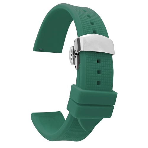 Bandini Waterproof Soft Rubber Silicone Deployment Smart Watch Band Strap For Skagen Falster 2 and 3, Jorn - 22mm, Green