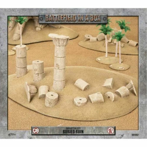 Battlefield in a Box: Forgotten City - Buried RuinThe Buried Ruin is a pre-painted terrain piece from the Forgotten City series, designed to bring the atmosphere of an ancient, long-lost civilization to your tabletop. Half-submerged and weathered, this ruin adds depth, narra...