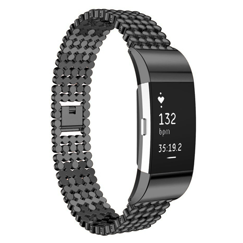 Bead Style Stainless Steel Watch Band for Fitbit Charge 2 in Black