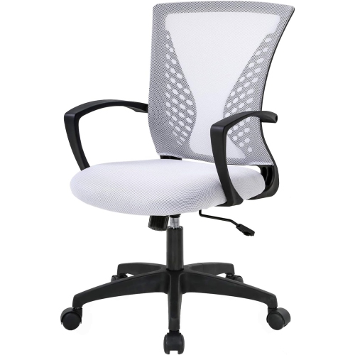BestOffice Home Office Chair Mid Back PC Swivel Lumbar Support Adjustable Desk Task Computer Ergonomic Comfortable Mesh Chair with Armrest (White)