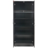 Keep your room, basement workshop, or storage shed organized and optimized with the Better Home Products Harmony Wood Two Door Armoire Wardrobe Cabinet. Crafted of sturdy laminated engineered wood, this cabinet strikes a tall, clean-lined rectangular silhouette. Two lockable doors with silver finish plastic bar pull smoothly open to revel one fixed top shelf and 3 removable shelves that can be used to store clothing, bed sheets, pillowcases, blankets, baskets of smalle...