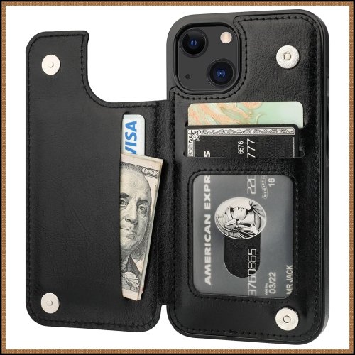 BIG SALE - Wallet Case for iPhone 13 with Card Holder, PU Leather Kickstand Card Slots Case, Double Magnetic Clasp Durable Shockproof Cover for iPhone 13