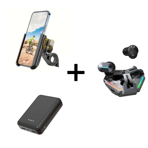 Bike Phone Mount, 12000mAh Power Bank, and Gaming Earbuds with Noise Cancelling and RGB Lighting