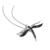 Black Accent Diamond Dragonfly Charm Pendant Necklace in Sterling Silver with Chain