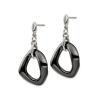 These fashionable dangle earrings create a cute casual pair of earrings. Crafted from sleek sterling silver with bold black dangling ceramic shapes , these are the right earrings at the right price. These stainless steel earrings weigh 15.00 grams and are 1 inche in width and 1 1/2 inches in length.