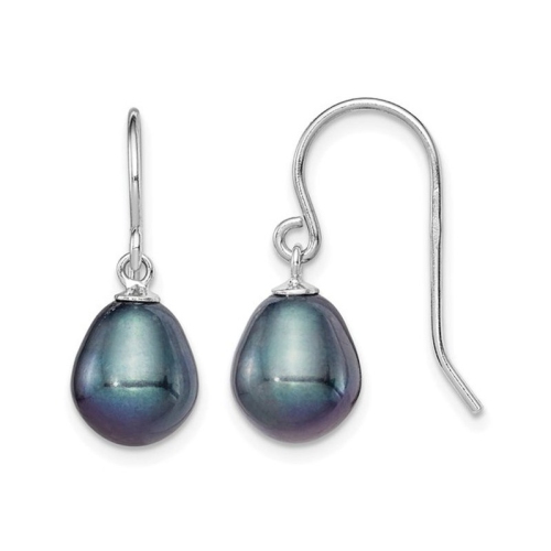 Classic drop dangle earring from sterling silver featuring black freshwater cultured 8-9mm pearls.