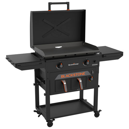 The Blackstone 28-inch griddle brings versatility and convenience to your outdoor kitchen. Two independently controlled burners let you cook main and side dishes at different temperatures all at once. The 4qt. air fryer and warming drawers let you fry or bake sides while keeping other dishes warm. An electric push-button ignition provides a simple, reliable start.