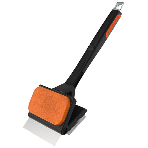 The Blackstone Original three-in-one griddle cleaning tool keeps your griddle plate clean with its versatile design. It includes a cleaning brick, scraper, and scrub pad for thorough cleaning. The ergonomic, slip-resistant handle ensures a comfortable grip.