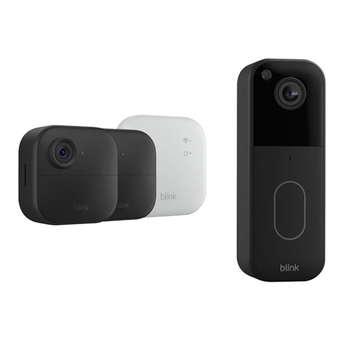 Blink Outdoor 4 Wire-Free 1080p Full HD IP Security Camera System (2-Pack) & 1440p Wi-Fi Video Doorbell - Black