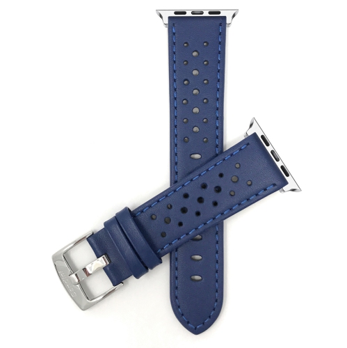 Blue, GT Rally Perforrated, Vented Racer Leather 41mm / 40mm / 38mm Apple Watch Strap Band, Series 8 7 6 5 4 3 2 1 & SE