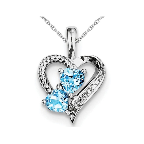 Sleek sterling silver is crafted in a heart while heart shaped blue topaz gemstones complete the look as it hangs from an 18 inch sterling silver chain included.