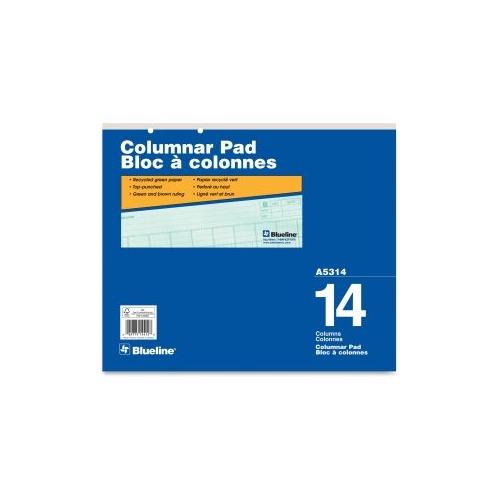 Blueline Columnar Pad - 50 Sheet(s) - Gummed - 14" x 16.50" Sheet Size - Green - 1 Each