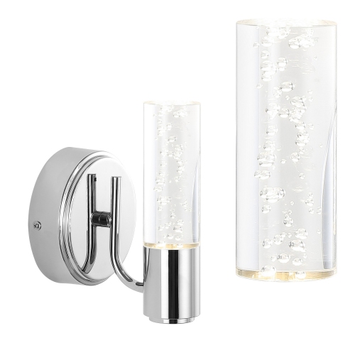 Add some sparkle to your modern bath vanity with our Art Deco-inspired contemporary wall light. The chrome finish accentuates the fixture's clean lines, while a clear bubble acrylic cylinder adds unexpected texture to the minimalist design. This versatile light is perfect for mid-century modern or contemporary spaces, adding a touch of sparkle to your bath vanity, kitchen, hallway or entry.