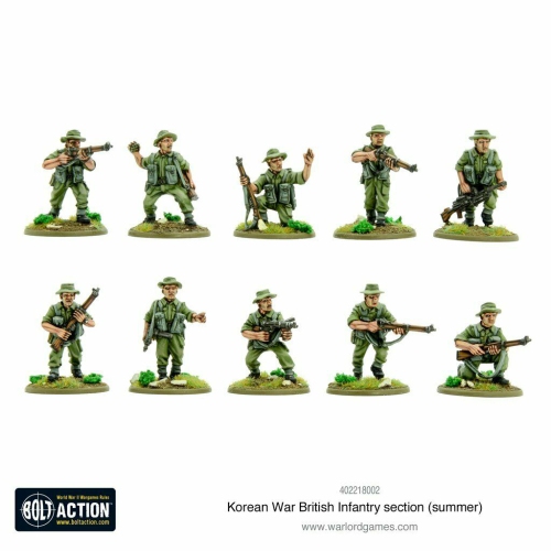 Bolt Action Korean War: British Army Infantry SectionThe backbone of the British and Commonwealth armies was the regular soldier. At the start of the war they may have lacked practical experience, but were well-trained professionals, and likely to be led by men who had fought for several years during WWII. The Commonwealth Brigade soldi...