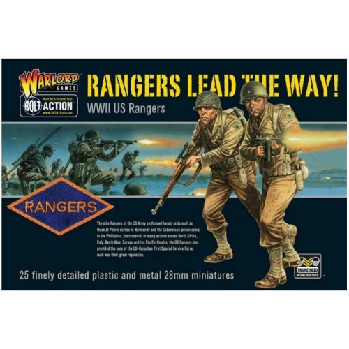 Bolt Action Rangers Lead The Way US RangersRangers Lead The Way! contains:Enough plastic and metal components to make 25 US Rangers miniatures, including a host of different weapon and command model options.Metal parts, including Bangalore torpedoe...