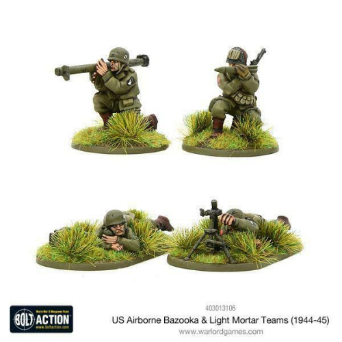 Bolt Action US Airborne Bazooka & Light Mortar Team (1944-45) New