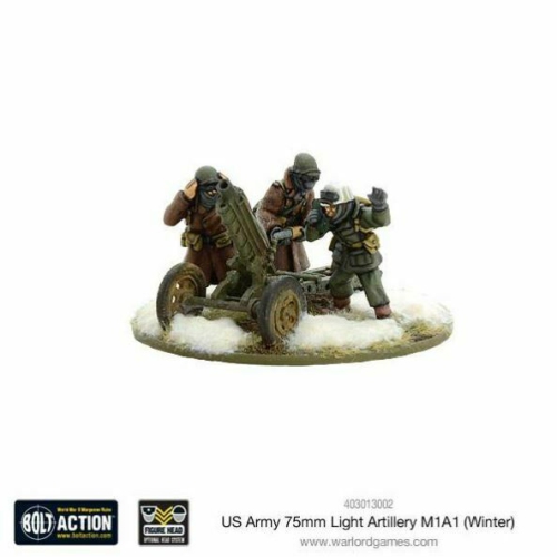 Bolt Action US Army 75mm Light Artillery M1A1 WinterSmall-calibre field artillery was not widely used in the American Army except by the Paratroopers and the Marines. A few other special forces preferred the small-calibre pack howitzer (75mm) because it could be moved easily. It could also be transported or dropped by parachute after br...