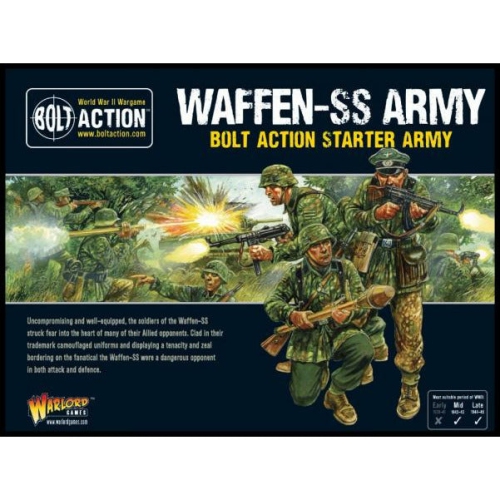 Bolt Action Waffen -SS Army Starter ArmyTough, lavishly equipped and politically indoctrinated, SS troops formed over 38 divisions and numerous other regimental and battalion-sized units, totalling nearly a million men under arms.Their armoured units won many plaudits for their actions, and althoug...