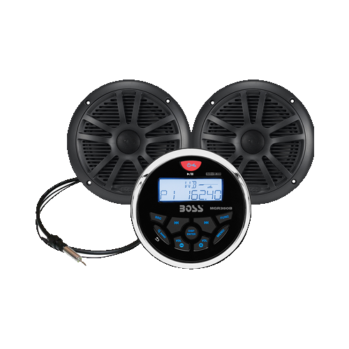 Boss Audio MCKGB350B.6 Combo - Marine Gauge Radio w-Marine Antenna & 2 6.5" Speakers - Black