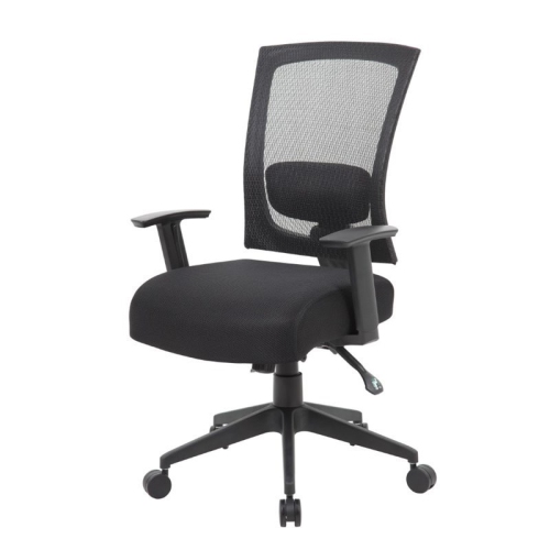 Contemporary chair upholstered in Black mesh material, which allows air to pass through, adding to long term comfort by preventing body heat and moisture build-up. Breathable 5" mesh fabric seat. Ratchet back height adjustment. Lumbar adjustment. Adjustable height armrests. 3 paddle multi-function tilting mechanism, which allows the seat and back to be independently adjusted and locked in position. Pneumatic gas lift seat height adjustment. Adjustable tilt tension con...