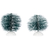 9 piece mini Christmas village trees. Includes 1 large tree; 2 medium trees; 4 small trees and 2 bushes. Lightly frosted for a wintry feel