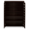 Start organizing your collection of shoes with this practical shoe cabinet. Featuring dark brown PU veneer finish, PVC legs in silver powder coated and a sleek stylish contemporary design, this quality made shoe cabinet easily matches any décor. It features slatted doors and four fixed shelves that stores up to 15 pairs of shoes. Great for organizing your favorites, just perfect for your storage needs! Adalwin shoe storage cabinet is made with open slat doors allowing ...