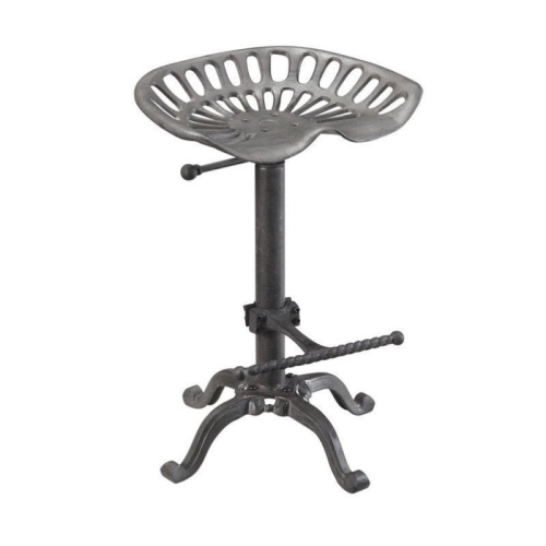 Modeled after a Vintage Tractor Seat, our iron tractor seat sits top a claw-footed base for a great rustic look and feel. The seat adjusts from 22-1/2"H - 33"H.Features : Material: MetalFinish: Industrial brownPowder coated finishAdjustable seat heightSeat is a replica of a tractor seatSpecifications : Product Dimensions : 33.5"H x 18.75"W x 14.25"DProduct Weight : 30 l...