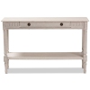 The Bowery Hill ball-turned details and the weathered look of the 1-drawer console table will add an element of romance and bygone times to your home. The country cottage farmhouse-inspired design is evident in the amount of detail put into this console table. The table features one pull-out drawer and a bottom shelf for convenience. The whitewashed finish of the piece and charming, dark bronze finished drawer pulls give the console table a bit of antique style. The ta...