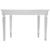 Glitz and glamour reign with this elegant matte silver console table. Scalloped corners bounce reflections from the mosaic tiled apron and legs, while shimmering mirrored tabletop shines. Invoke timeless Hollywood regency in your décor with this refined console table acting as a buffet in the dining room, vanity desk in the dressing area, media center under your wall mounted TV, or catch-all table in the entryway.Features:Matte silver...