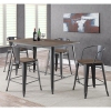 Stylishly on-trend, this edgy industrial style metal counter-height bar stool is sure to bring any space up-to-date. This piece showcases a wooden seat with an attractive natural wood grain finish that rests upon a sturdy bronze metal frame for long-lasting quality. The slim backrest curves down from the tube-like arms in a gentle arc that provides plenty of comforts. Featuring a beautiful gray finish, this bar stool is the unique surprise your decor been needing!<...
