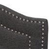 Clean, classic and graceful, the fabric upholstered headboard will imbue your sleep space with a calming energy. Featuring dark gray polyester fabric upholstery with high density foam, the headboard is an up to-date design and will bring ultimate comfort to your sleeping space. The mounting wood posts in solid rubberwood provide adjustable levels and additionally, the double trimmed nail heads give a touch of glamour. Curvaceous outlined, the headboard is button-tufted...