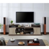 Provide ample storage and display space for all your home entertainment accessories with this rustic 72-inch TV stand. The collection combines mid-century modern style and rustic elements with ample storage options to be the perfect complement for your rustic decor. This rustic TV stand is made with Wood and particle board and features a chestnut brown and natural oak finish for classic appeal.Features : CONVENIENT CABLE MANAGEMENT - 2 cut-out ...