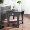 The Bowery Hill Contemporary Wood End Table in Gray cuts a stylish shape with its dramatically curved legs and chic square handles. Storage is covered with the lower shelf and upper drawer. Crafted of solid wood, wood veneer, and MDF, a gray finish puts the final bit of polish on this end table.Features : RELIABLE TABLE TOP MATERIAL - This top is formed by solid wood and wood veneer that has a density and hardness resistant to every day wear an...