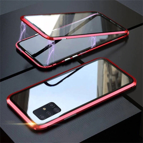 BRENDA 360° Front+Back Clear Tempered Glass Metal Magnetic Case Cover For Samsung Galaxy S20 FE (Red) - Free Shipping