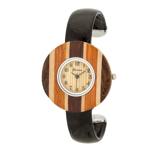 Brenna Wood Inspi Leather Cuff Watch Size: One Size Black