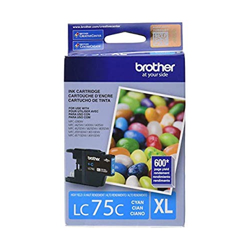 Brother LC-75 Cyan Original Ink Cartridge, Page Yield 600 Pages. Compatible Printer List MFC-J280WMFC-J425WMFC-J430WMFC-J435WMFC-J5910DWMFC-J625DWMFC-J6510DWMFC-J6710DWMFC-J6910DWMFC-J825DWMFC-J835DW The goal of the original Brother LC75BK OEM ink cartridge is to offer the ultimate printing experience. We ensure you will get the best high quality printing supplies at low costs