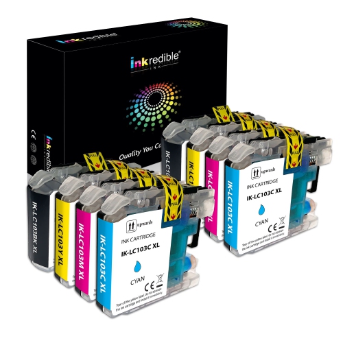 Brother LC103 Compatible Ink Cartridge Combo High Yield (BK/C/M/Y) - Inkredible Ink™ - 8/Pack (2 BK, 2 C, 2 M, 2 Y)