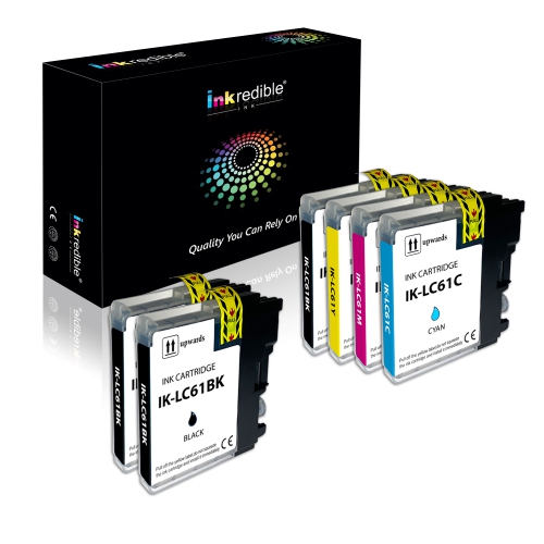 Brother LC61, LC65 Compatible Ink Cartridge Combo High Yield (BK/C/M/Y) - Inkredible Ink™ - 6/Pack (3 BK, 1 C, 1 M, 1 Y)