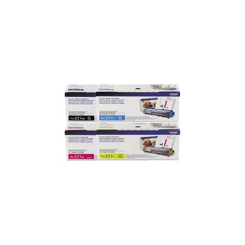 Brother Genuine TN221 Original Toner Cartridge Combo Set BK/C/M/Y delivers crisp, professional laser print quality with BK up to 2,500 pages, C/M/Y up to 1,400 pages of print.