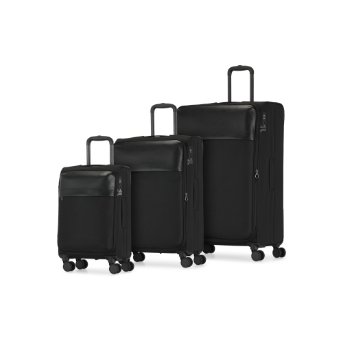 Siena Collection, the ultimate travel companion for the modern adventurer. Crafted with a combination of lightweight and resistant polyester, along with vegan leather trim, this luggage is as durable as it is stylish. Double 360-degree spinner wheels for smooth and quiet rolling. Signature lined interior includes shoe pockets, zippered pockets and tightening straps to keep content organized and in place.