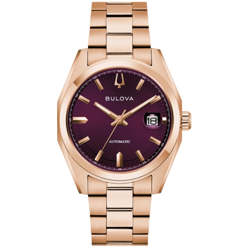 Bulova Mens Surveyor Automatic Watch 39mm Rose Gold-Tone Stainless Steel Case and Bracelet with Purple Dial (97B234)