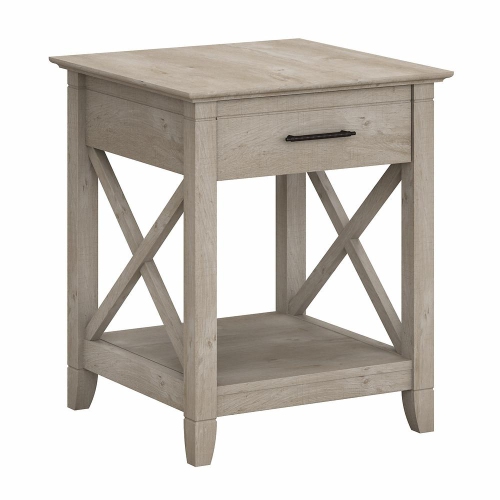 Bush Furniture Key West End Table with Storage in Washed Gray