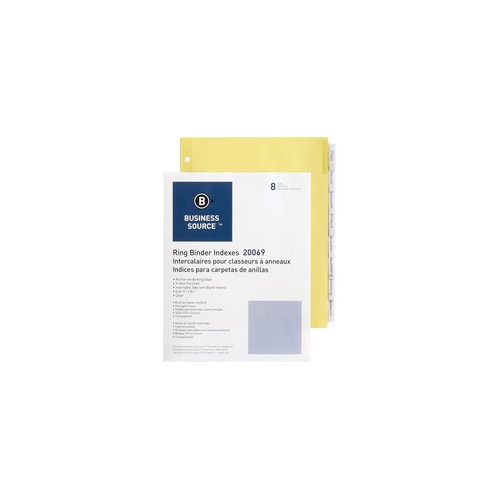 Business Source Buff Stock Ring Binder Indexes - 8 x Divider(s) - 8 Tab(s)/Set1.25" Tab Width - 8.50" Divider Width x 11" Divider Length - Letter - 3 Hole Punched - Clear Buff Paper Divider - Clear Tab(s) - 8 / Set