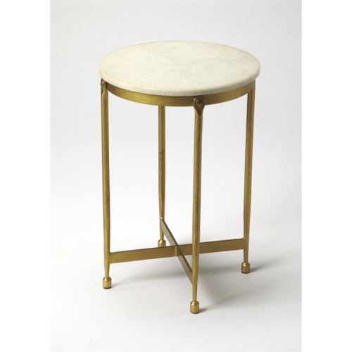 Today's classic side table brings glam and shape together. Gold-finished iron legs and base allow for an open look, with a stunning marble top. A natural beauty, marble is today's fashion statement and the size and shape make this table one you will enjoy for years.Features : Finish: MetalworksMaterial: Iron, MDF, Marbleiron baseSpecifications : Product Dimensions : 20" H x 13.5" W x 13.5" D</l...