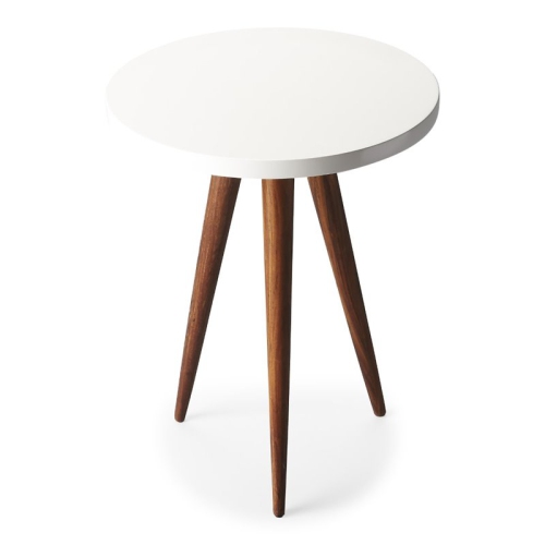 Famous for detailed design and product quiality, Butler Specialty is a family-owned company, manufacturing and marketing accent furniture and home décor since 1930. Butler Specialty is well known for its diversity of product design, superior and exotic materials, and quality wood products, both traditional and contemporary. Add contemporary style to your home with this modern bunching table. The little white round top is supported by Sheesham legs with beautiful, natu...