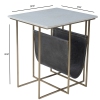 A stunning combination of marble, iron and leather! This magazine table is a beautiful compliment to any space.Features : ModernAccent TablesIron. Aged Silver Finish, Leather. Aged Gray-Brown Finish, Marble. White