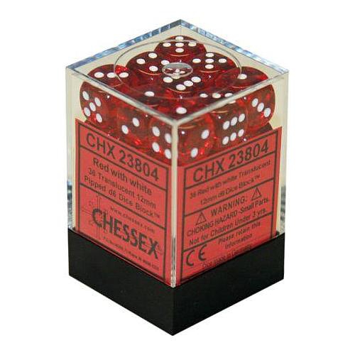 C ‎hessex Dice 36D6 Set - Translucent Red/White